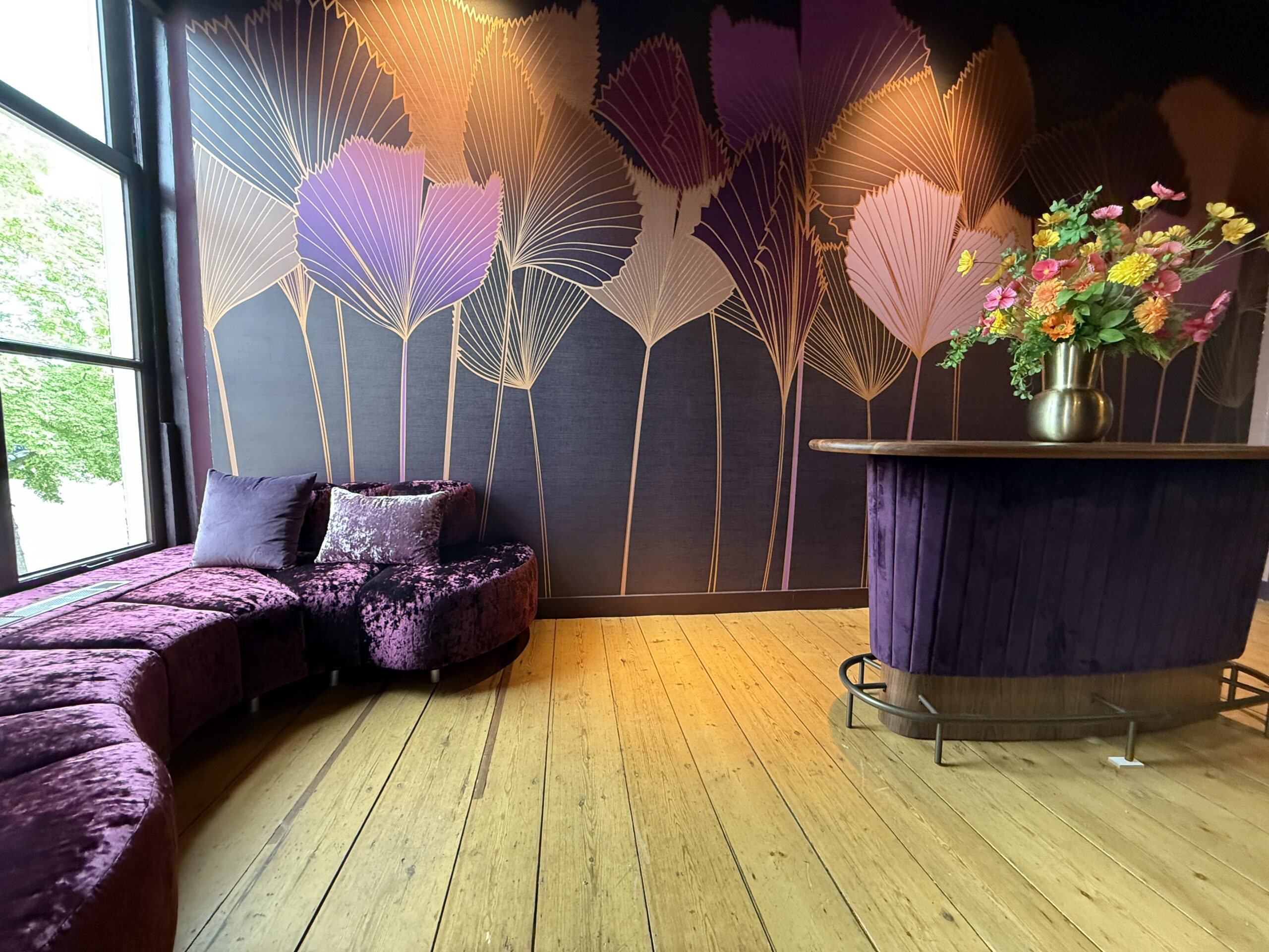 Meubeltotaalbouw in paarse velours